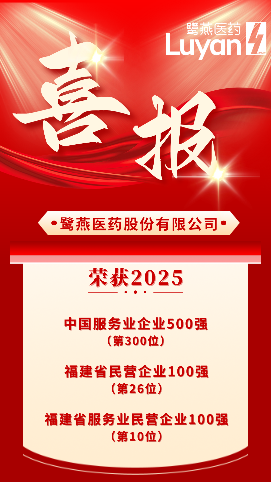 9月28日,福建省工商業(yè)聯(lián)合會(huì )在寧德發(fā)布“2025福建民營(yíng)企業(yè)100強”,鷺燕醫藥連續5年上榜,列第26位。同時(shí),在“2025福建省服務(wù)業(yè)民營(yíng)企業(yè)100強”榜單上,鷺燕醫藥連續3年上榜,位居第10位。